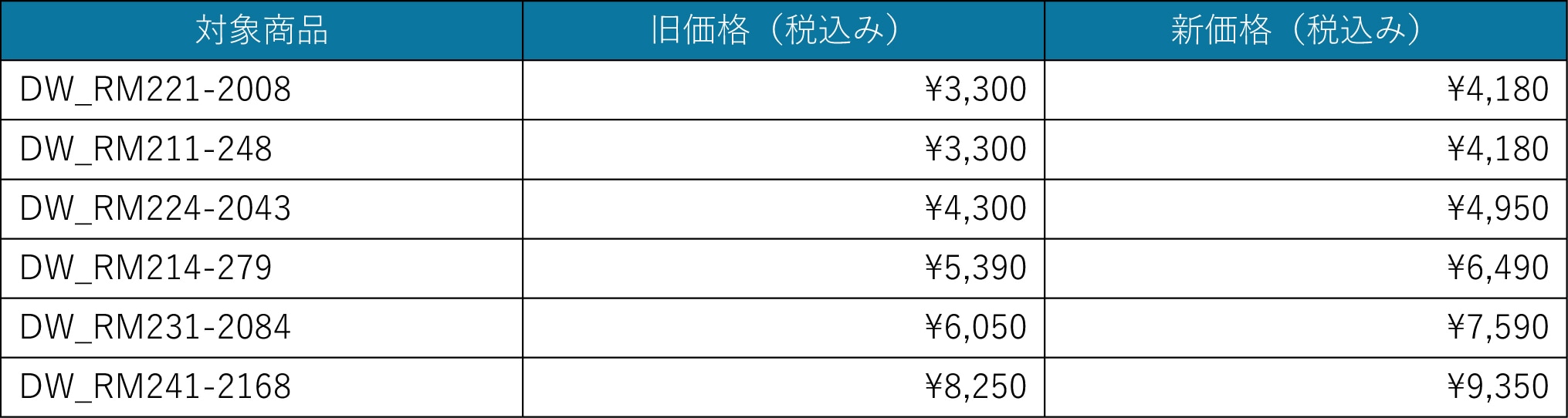 この度、諸般の事情により一部商品の価格改定を実施させていただく運びとなりました。